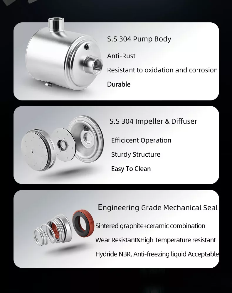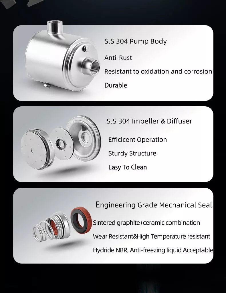 ຊຸດ CentryRIFugal ຊຸດສະແຕນເລດ Smart Centrigugal ແມ່ນຜະລິດຕະພັນທີ່ມີຄວາມຍືດຍຸ່ນຢູ່ໃນຕະຫຼາດທີ່ມີຂະຫນາດຂ້ອນຂ້າງແລະມີສຽງທີ່ຫມັ້ນຄົງ, ມີສຽງລົບກວນທີ່ຫມັ້ນຄົງ, ຄວາມໂງ່ຈ້າ, ເຖິງ 44-70%. ສ່ວນປະກອບທີ່ຜ່ານນ້ໍາທັງຫມົດແມ່ນເຮັດດ້ວຍສະແຕນເລດ Aisi304. ມັນຖືກນໍາໃຊ້ຢ່າງກວ້າງຂວາງໃນ